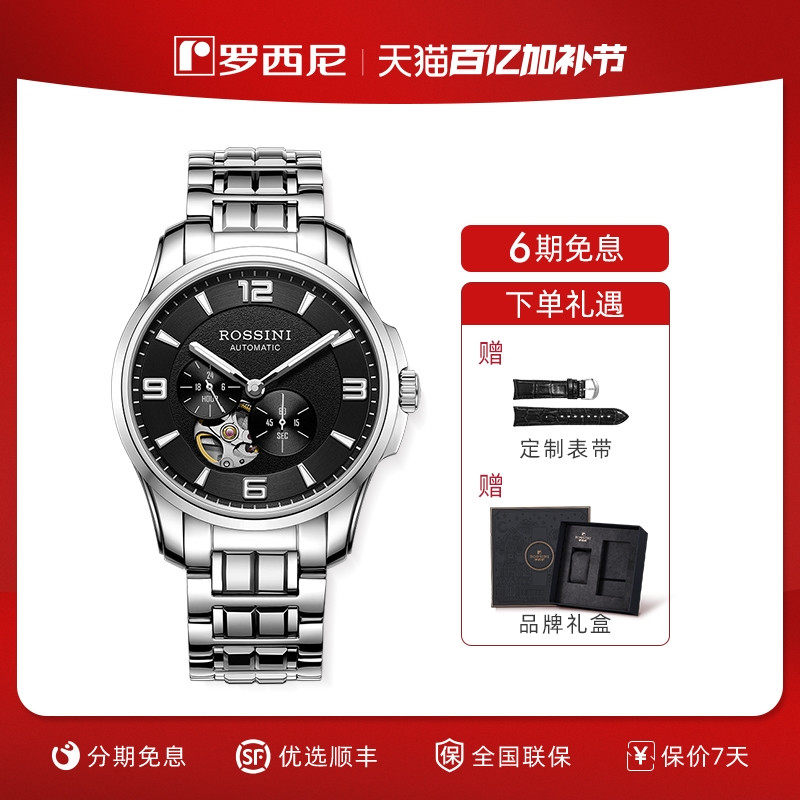 罗西尼手表男钨钢系列官方正品男士机械表防水夜光镂空男表送老公