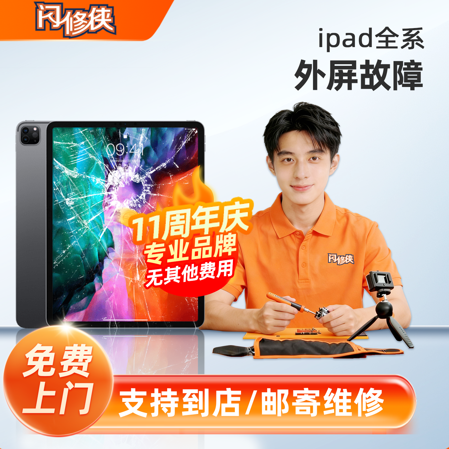 闪修侠苹果ipad9维修外屏玻璃上门更换mini6/air5/pro4屏幕平板