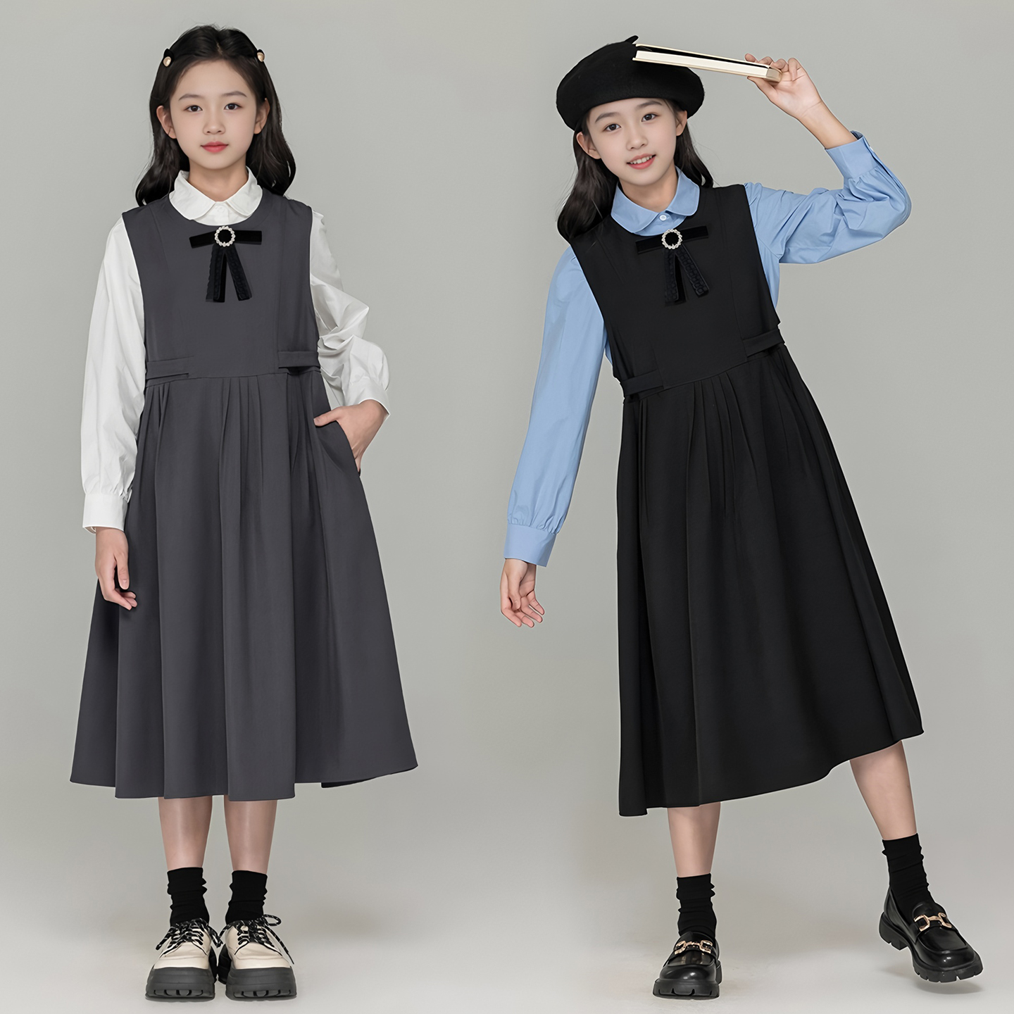 罗蒙儿童学院风背心连衣裙百褶裙女童背带裙套装中大童合唱演出服
