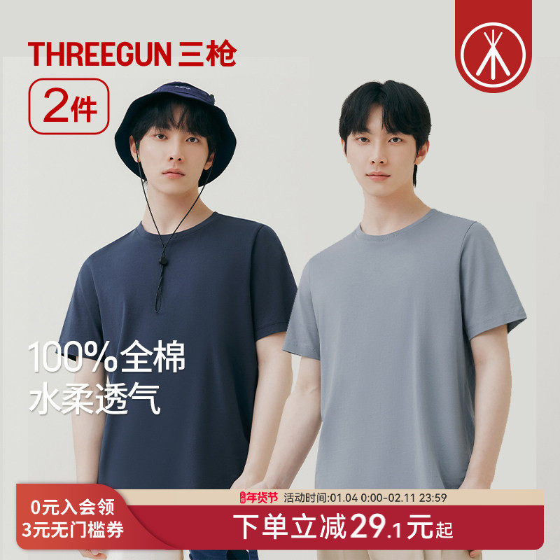 [2件]三枪男生T恤2026春夏纯棉透气舒适打底短袖水柔棉汗衫内搭