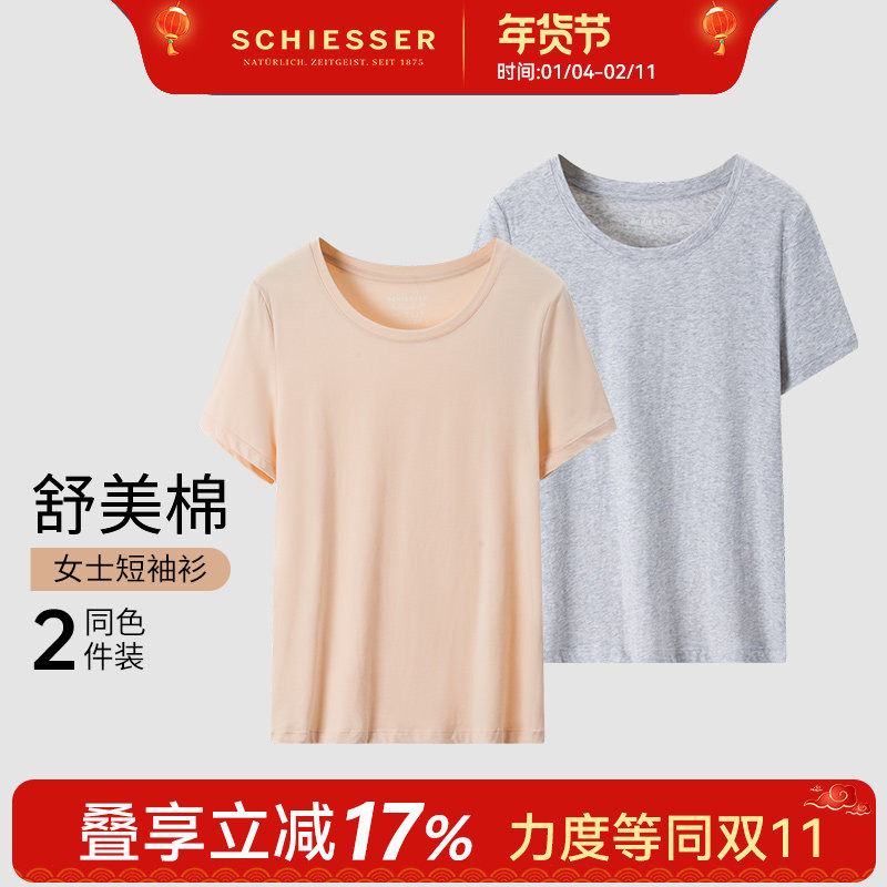2件装schiesser舒雅内衣T恤女士纯色舒美棉圆领短袖汗衫打底内衬