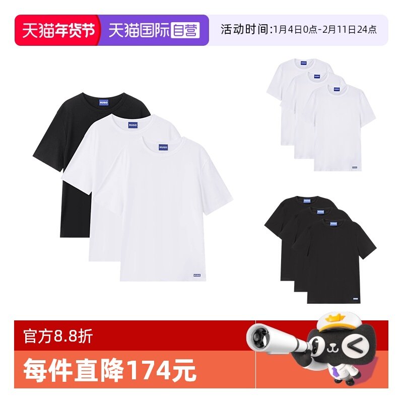 【自营】Hugo Boss男士徽标胶印圆领短袖汗衫T恤三件套装50522382