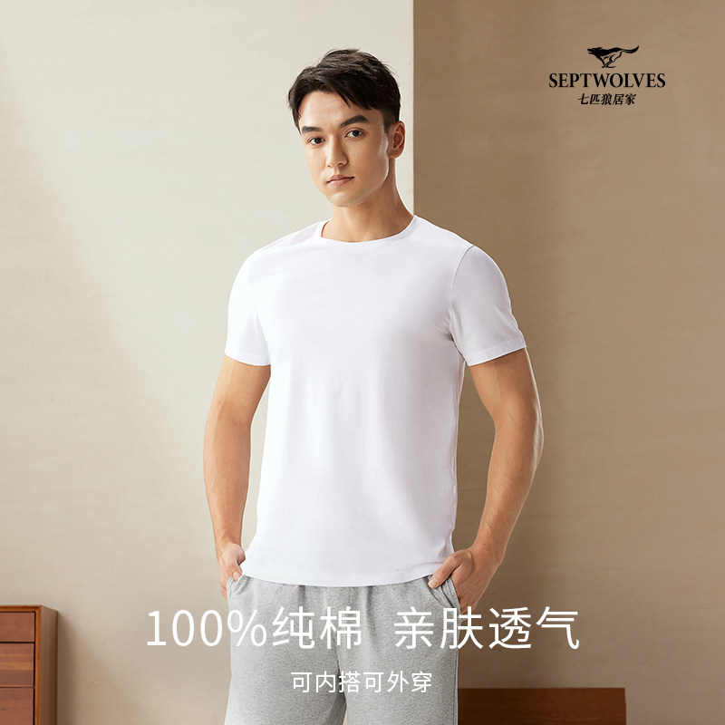 七匹狼纯棉T恤男士内穿短袖汗衫休闲薄款上衣透气打底衫家居男装