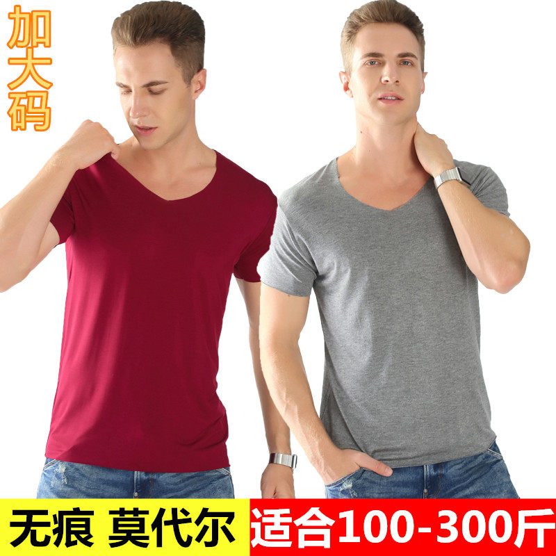 夏季莫代尔无痕V领短袖汗衫男200斤300斤加肥特大超大号半袖T恤薄