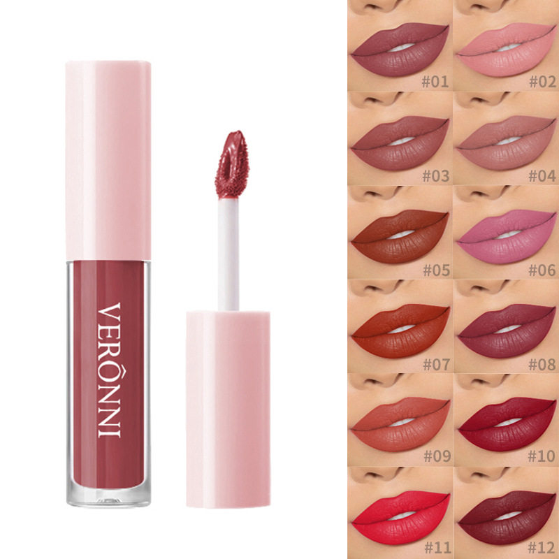 VERONNI外贸12色哑光雾面不粘杯不掉色唇釉欧美液体口红唇彩