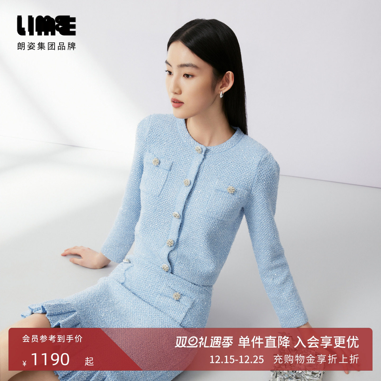 LIME莱茵千金名媛小香风针织套装2024秋新款圆领开衫优雅高腰半裙