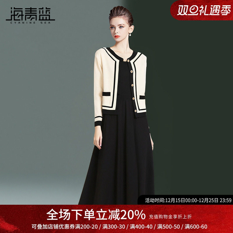 海青蓝时尚小香风针织套装裙女2025新款秋季高级感气质修身两件套