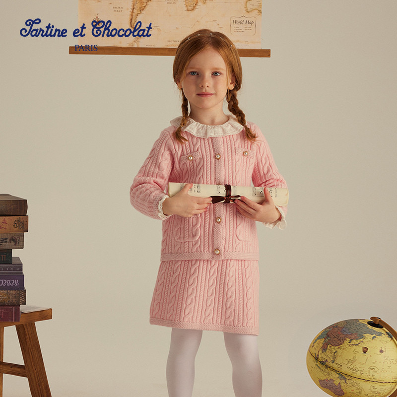 tartineetchocolat法国巧克力童装秋女童小香风针织套装