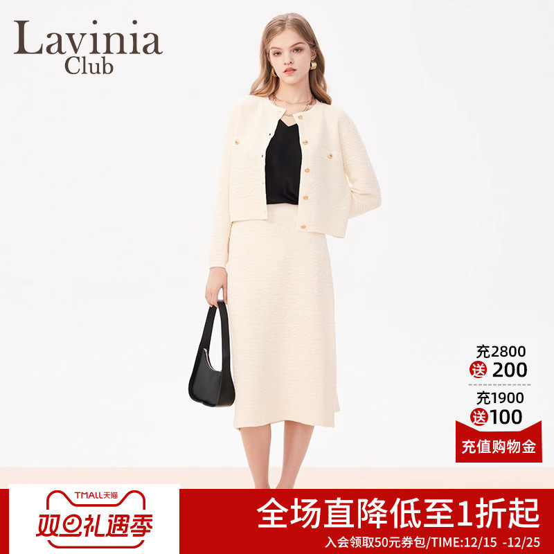 Lavinia职场通勤小香风针织套装女春秋新款圆领高腰半裙外套
