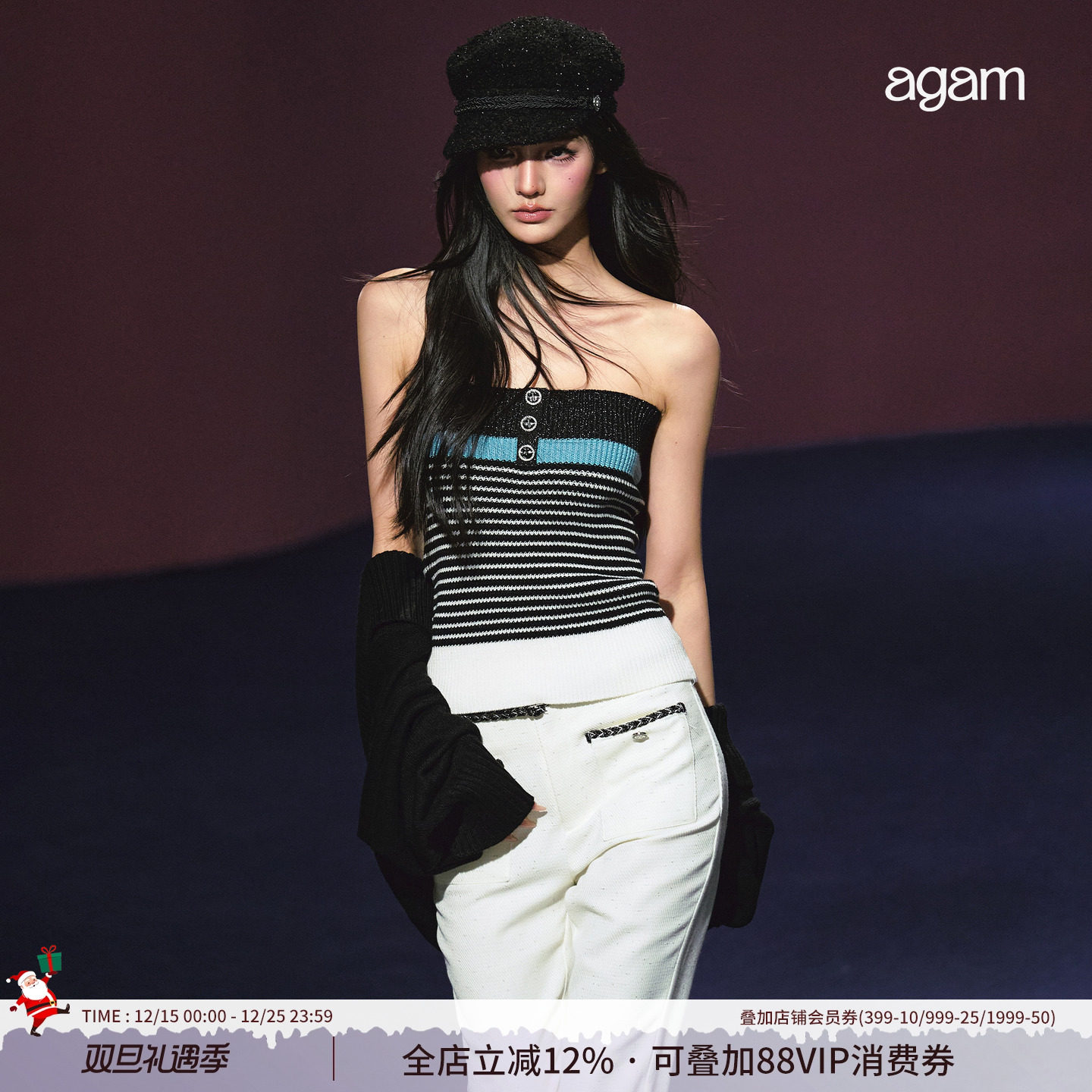 AGAM 软糯亲肤小香风撞色针织开衫女套装宽松高级感V领背心两件套