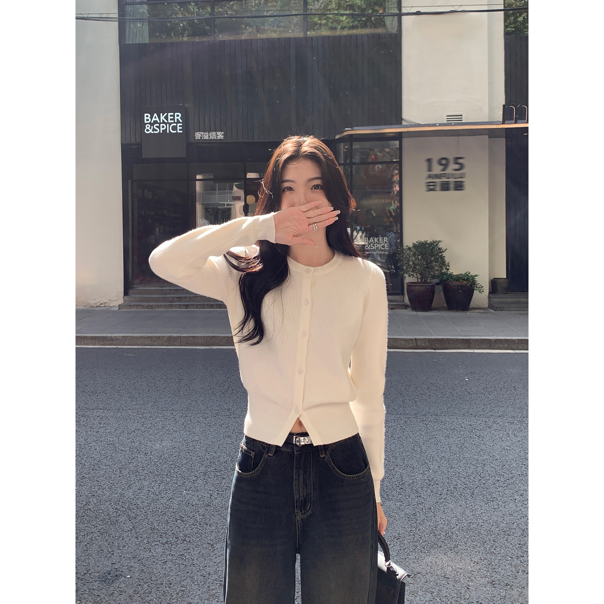 2025新款女装宽松针织开衫纯棉春秋外套纯色百搭圆领毛衣针织衫潮