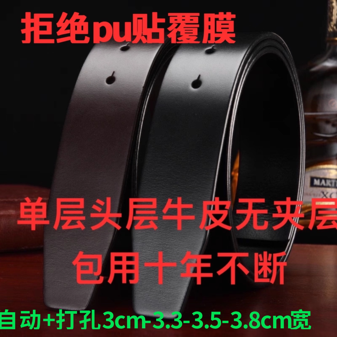 无头皮带男头层牛皮3.8平滑扣不带头腰带双面用3.2裤带无扣带条