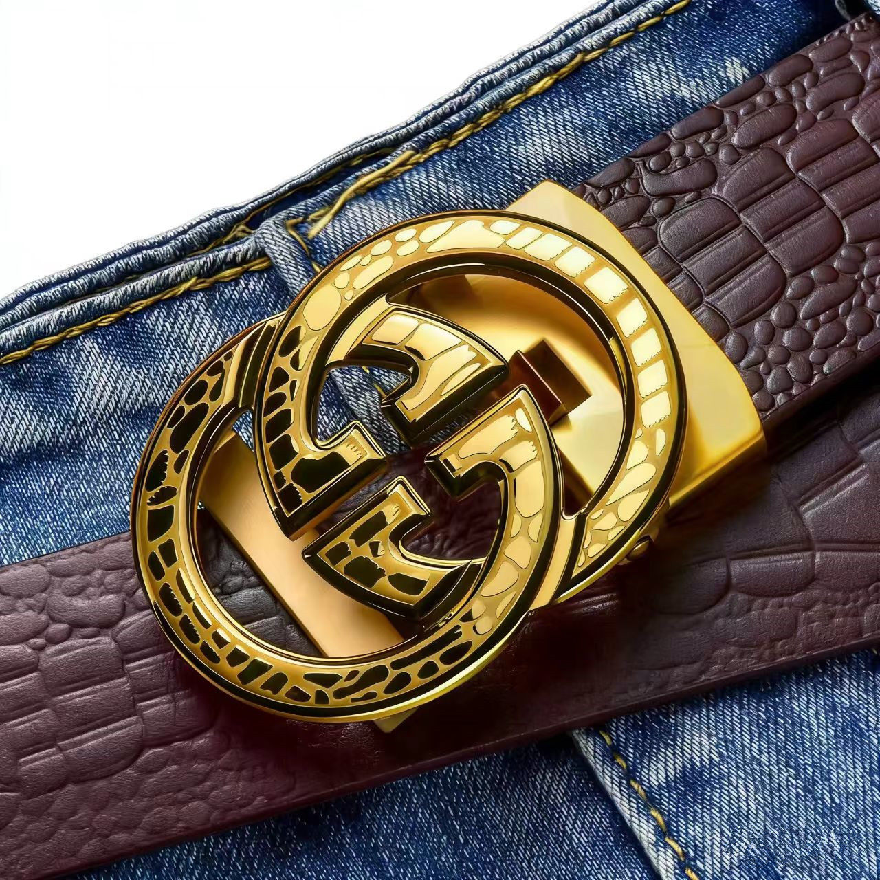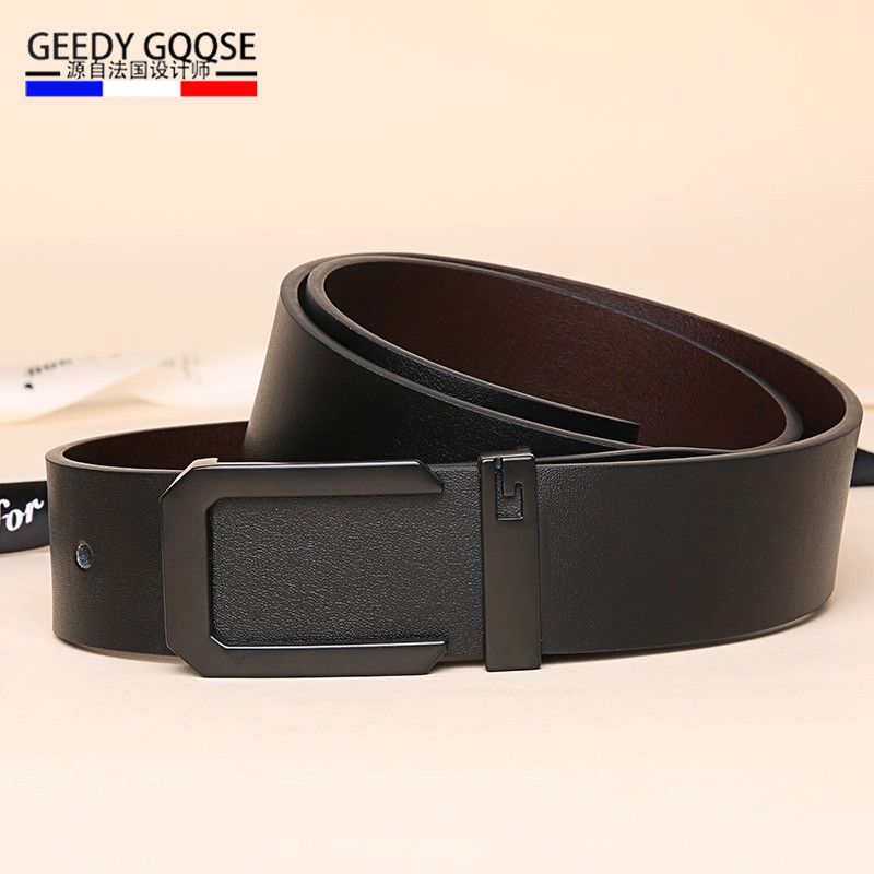 皮带男士平滑扣酷奇真皮休闲时尚年轻人百搭双G简约牛仔裤腰带潮