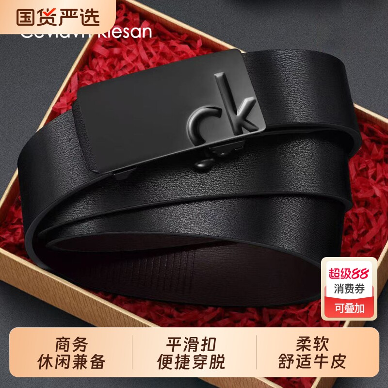 Ceviavn Kiesan皮带男真皮平滑扣裤带合金板扣牛皮青年裤腰带内穿