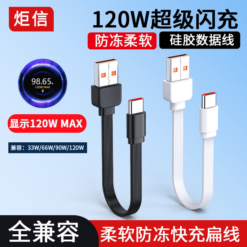倩梅超级快充数据线typec适用华为荣耀手机66w/120w充电线加粗锌合金tpyec安卓扁圆口通用软硅胶防冻防折断
