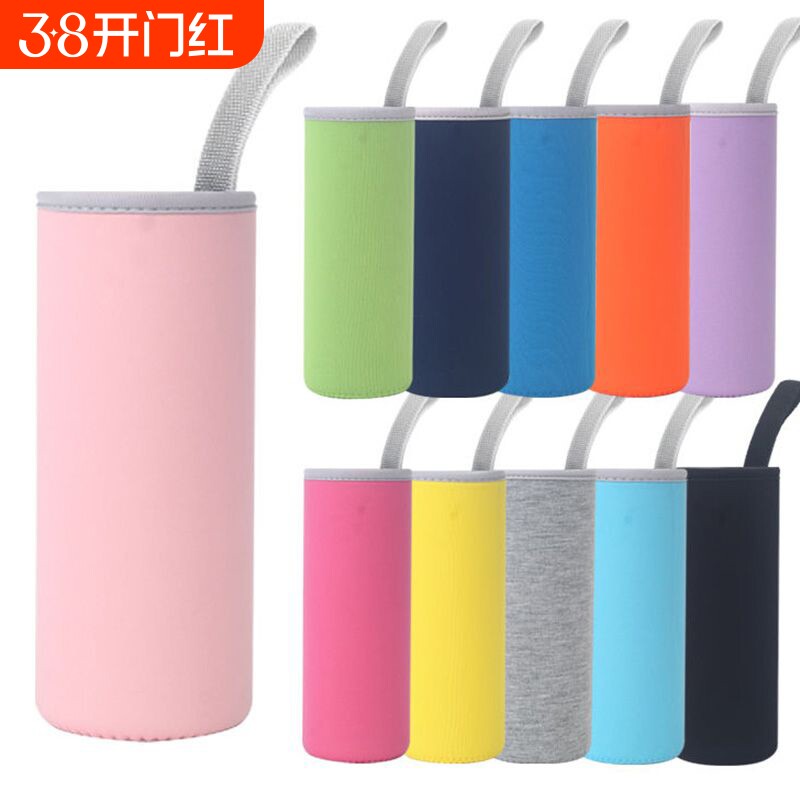 希诺玻璃杯套保温杯套防摔防烫防水加厚潜水布隔热套带提绳杯套子