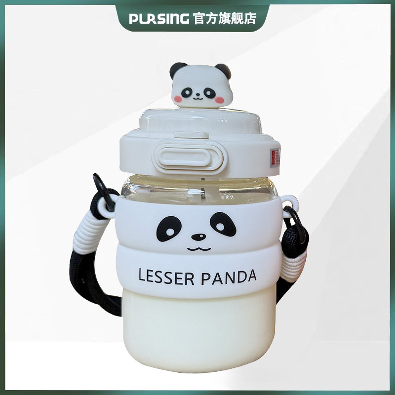 pursing 动物可爱小公仔玻璃杯硅胶吸嘴坚固提绳自带杯套玻璃杯