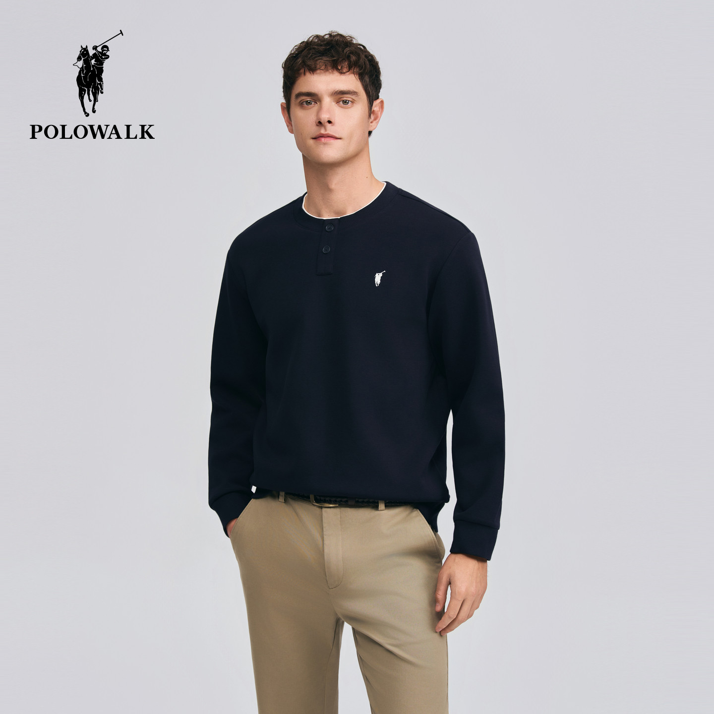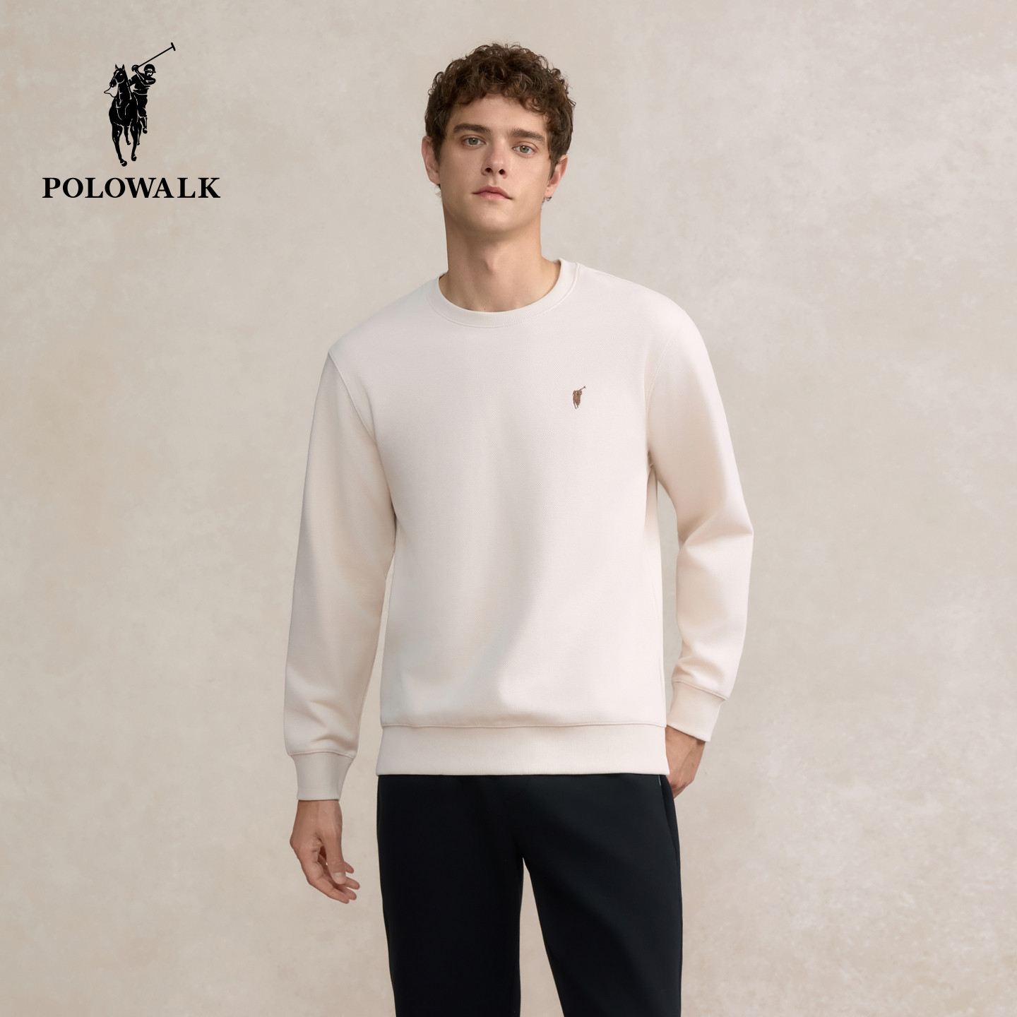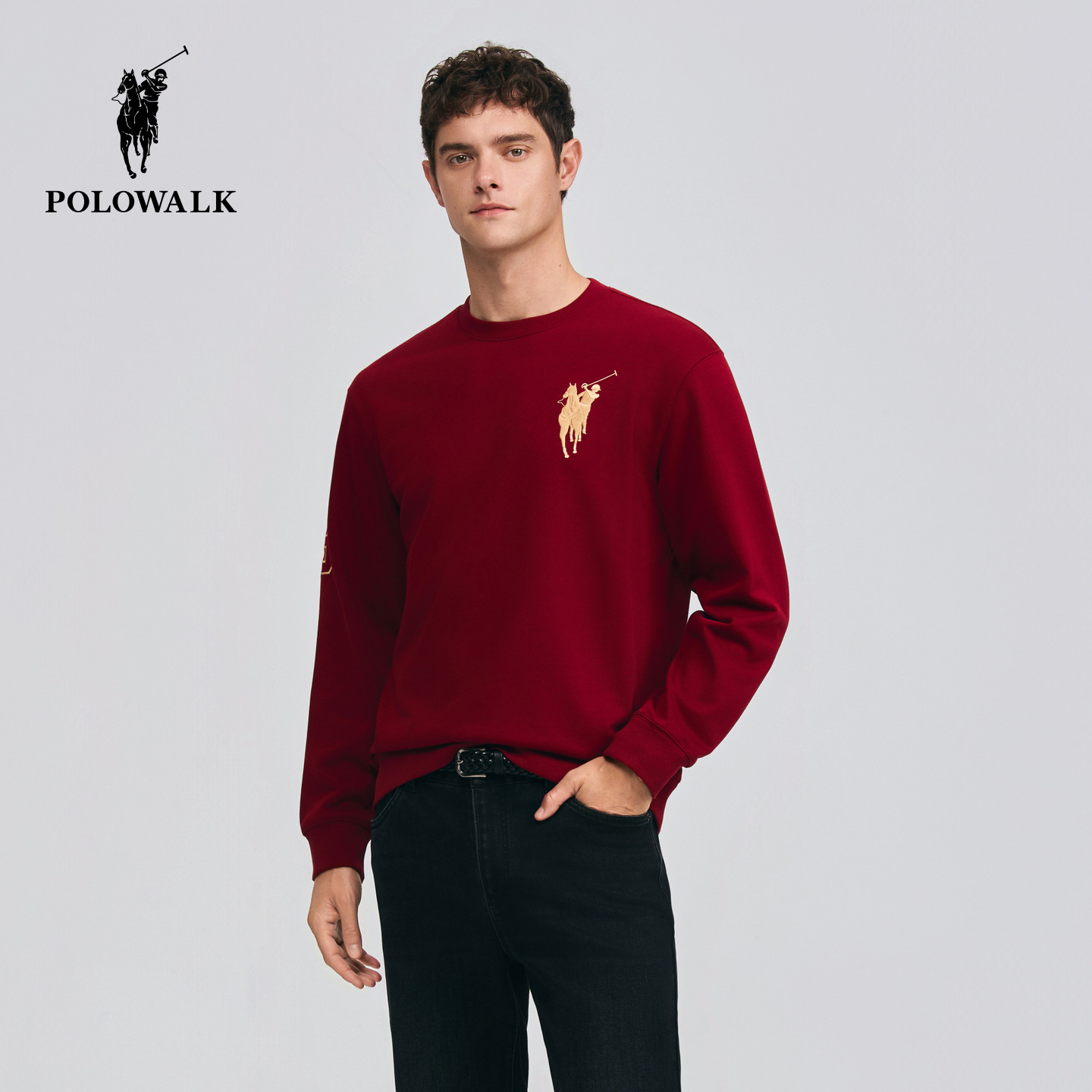 - 圆领套头刺绣卫衣 男