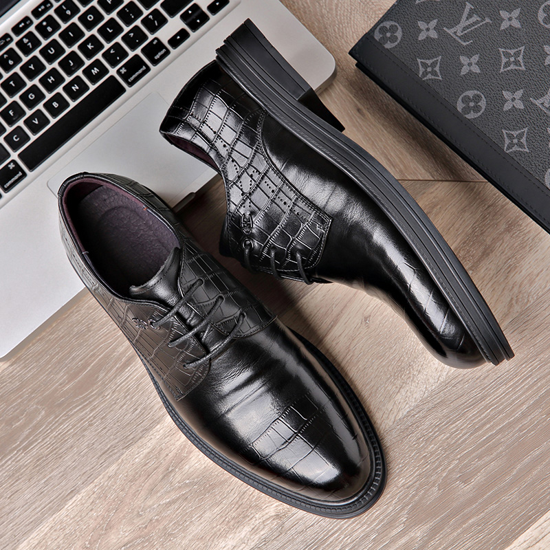 鳄鱼纹皮鞋男士真皮商务正装英伦风舒适办公室通勤增高新郎结婚鞋