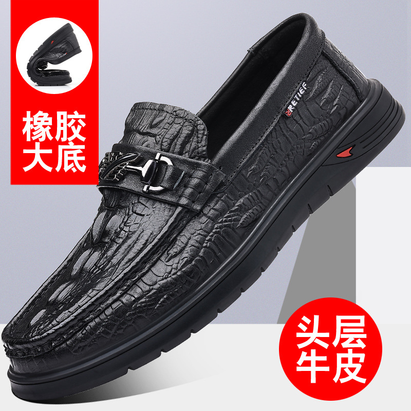 官方特卖正品男鞋春秋款男士商务休闲鳄鱼纹皮鞋真皮高端一脚蹬豆
