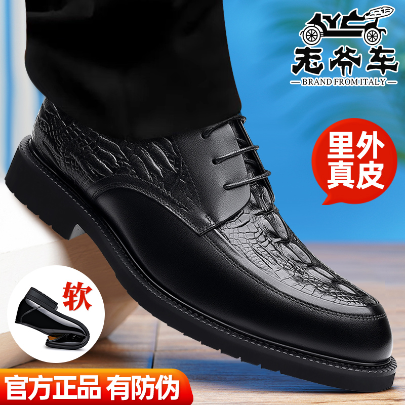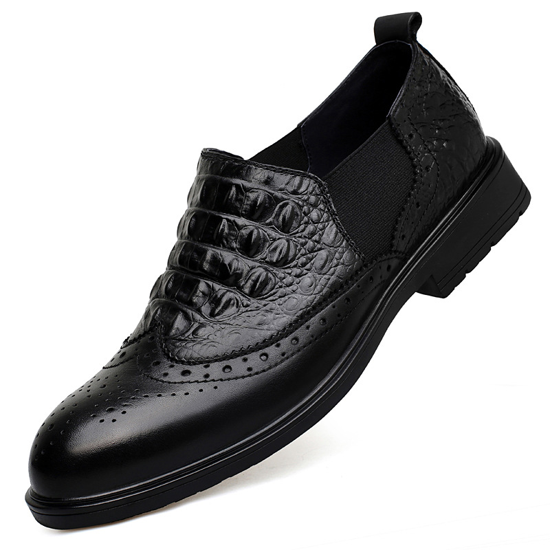 2025新款头层牛皮商务正装皮鞋英伦皮鞋男款真皮雕花鳄鱼纹皮鞋