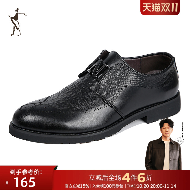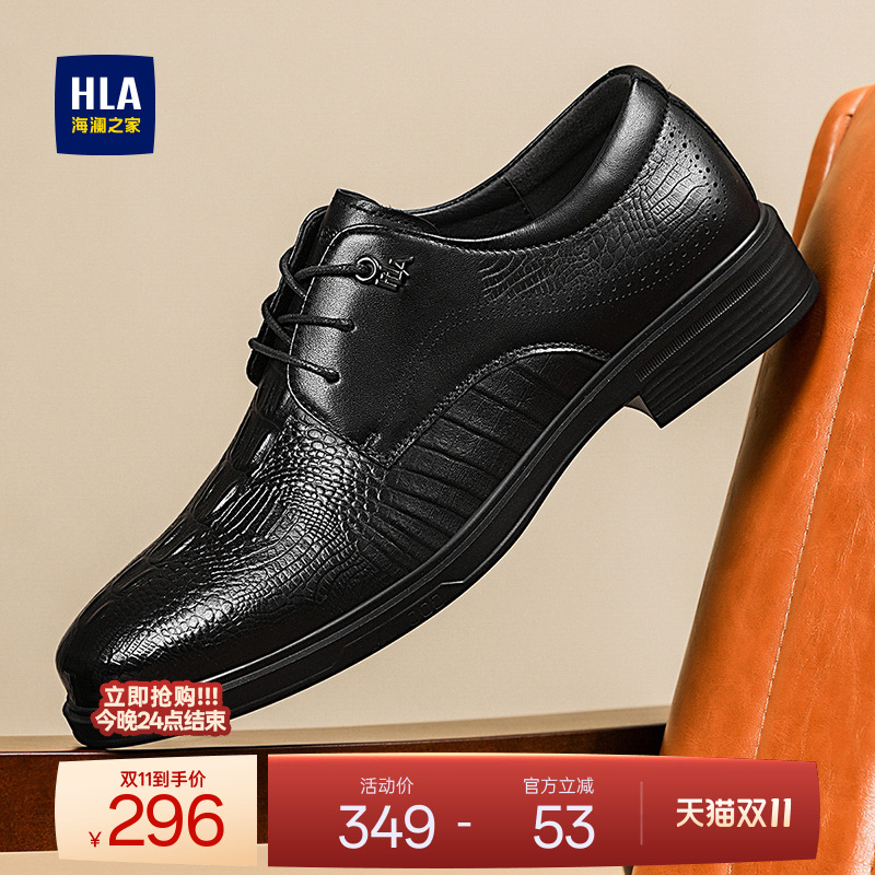 HLA/海澜之家男鞋新款秋冬时尚轻便鳄鱼纹皮鞋男士商务休闲真皮鞋