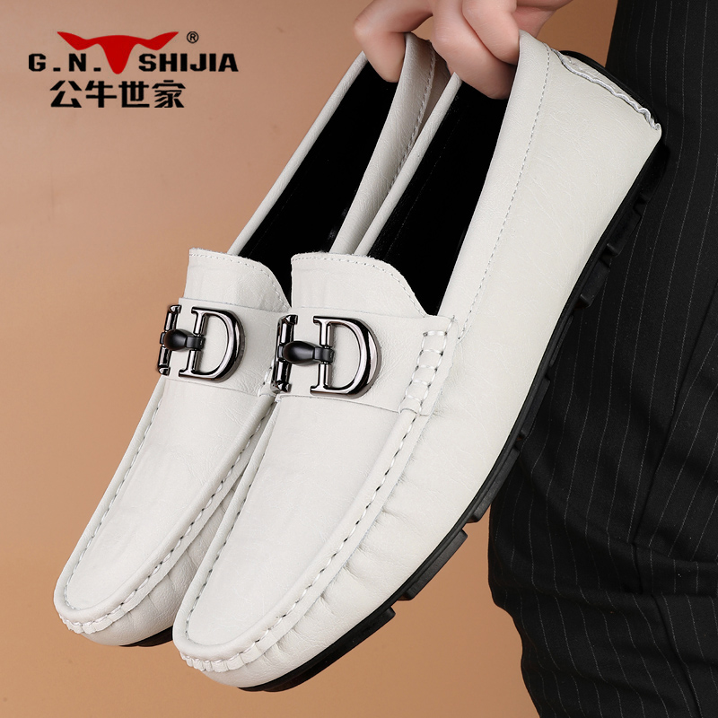版公牛依佳跑男鞋春秋款男士商务休闲鳄鱼纹皮鞋真皮高端一脚蹬豆