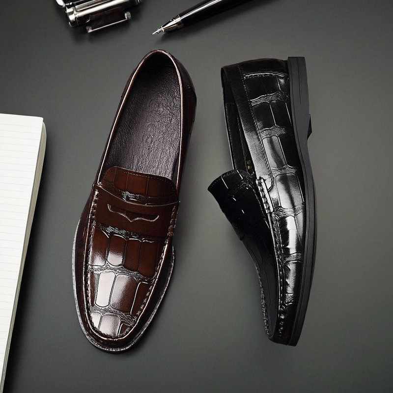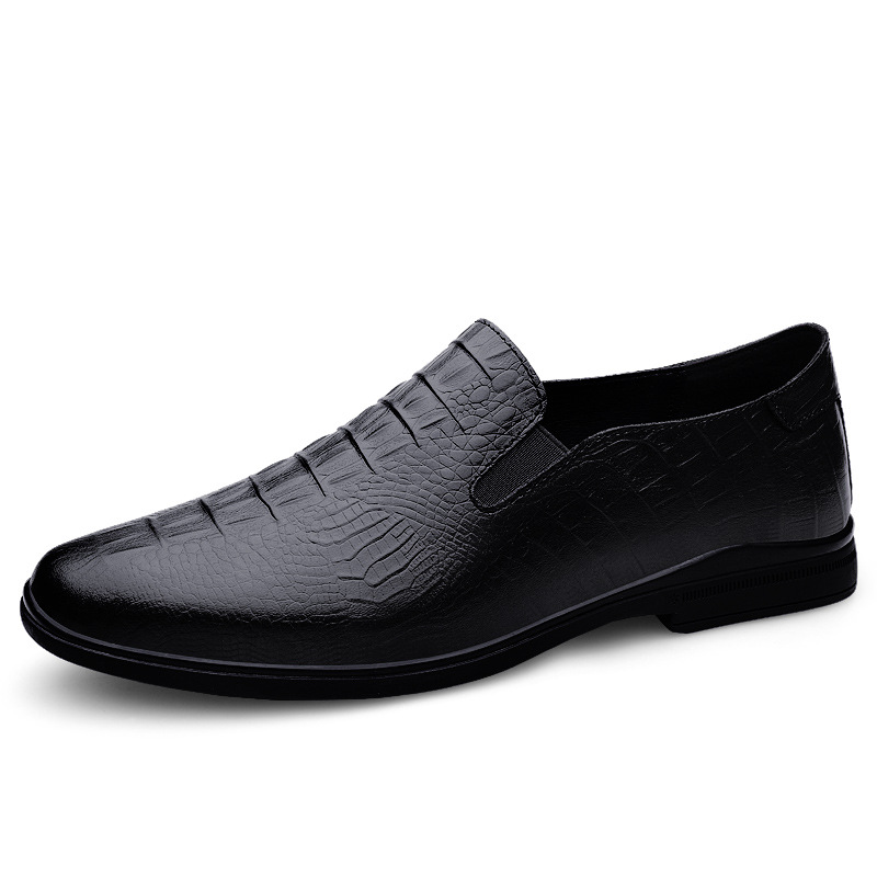 高档套脚鳄鱼纹皮鞋男压花牛皮商务正装英伦男鞋一脚蹬休闲鞋子男