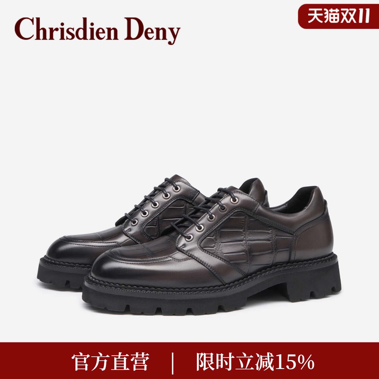 才子男鞋2025夏季新款中青年系带厚底通勤商务休闲鳄鱼纹皮鞋
