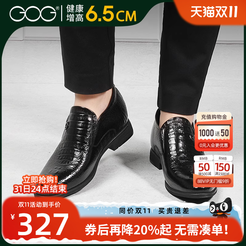 高哥增高鞋男士高档鳄鱼纹皮鞋男士真皮商务高级感隐形内增高男鞋