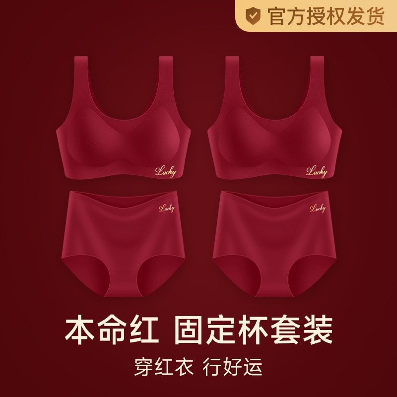红色内衣a内裤套装女士2025蛇年本命年小胸聚拢背心式无痕文胸结