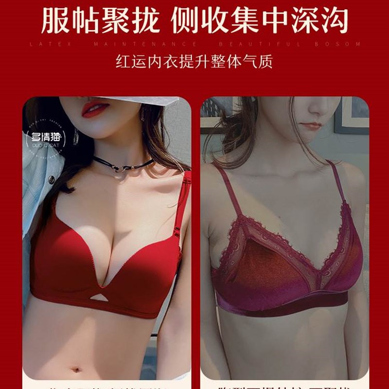 女士内衣a内裤2024新款红色结婚新娘文胸套装小胸聚拢胸罩本命年