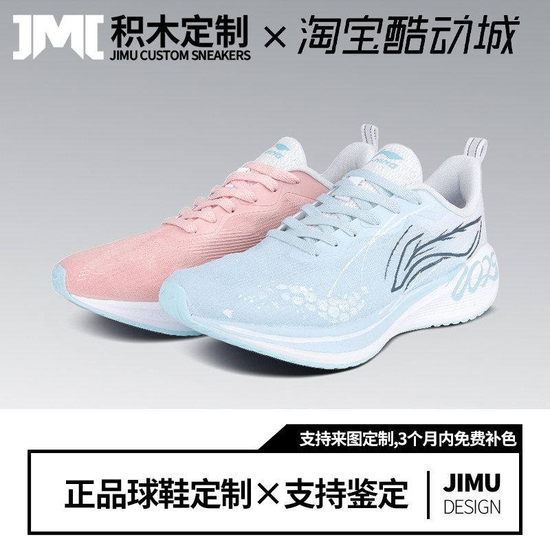 定制球鞋LiNing李宁 闪凌2 渐变涂鸦 低帮男子篮球鞋蓝粉色鸳鸯款