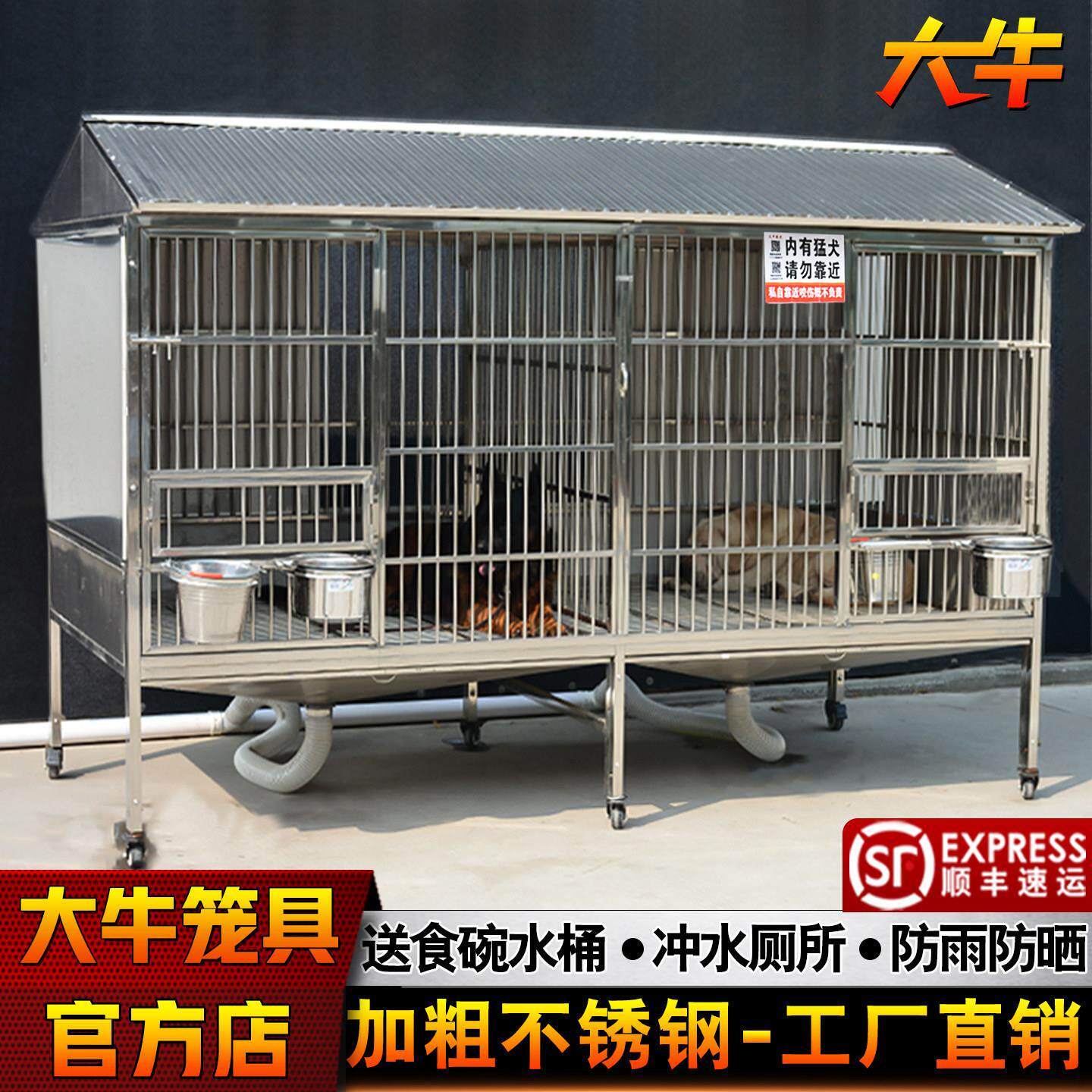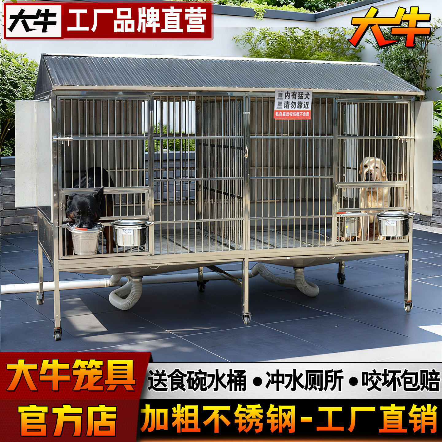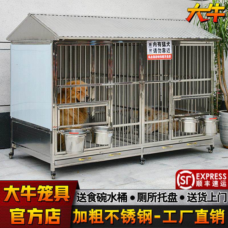 大牛爱宠狗笼子大型犬不锈钢狗笼金毛阿拉斯加大型带厕所漏斗狗舍