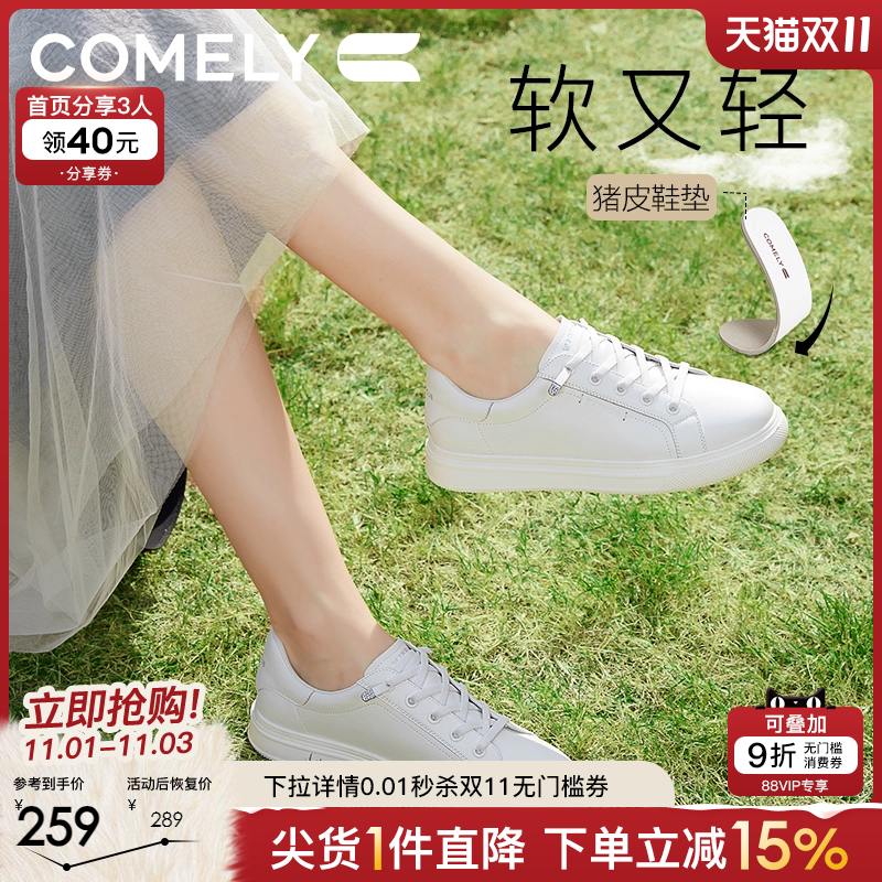 康奈女鞋2025秋季学院风系带百搭小白鞋时尚休闲旅游增高舒适板鞋