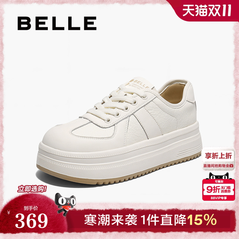 百丽女鞋简约厚底小白鞋免系带新款面包鞋增高休闲板鞋F1V1DAM6预