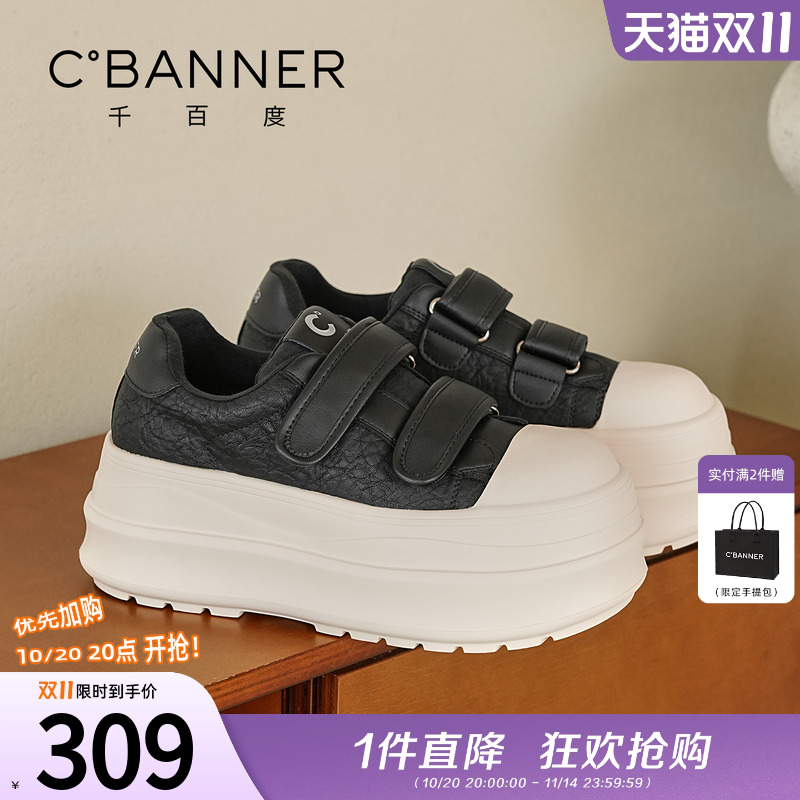千百度小白鞋女2025新款厚底百搭休闲板鞋免系带鞋子运动鞋平底鞋