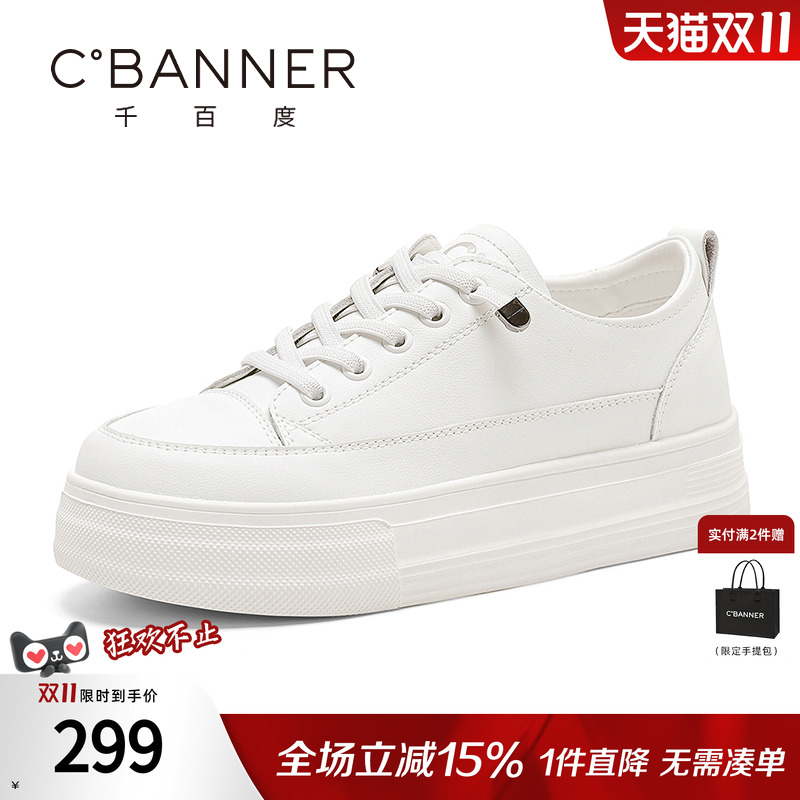 百丽女鞋子厚底小白鞋25春季新款休闲增高系带运动板鞋B2529AM5