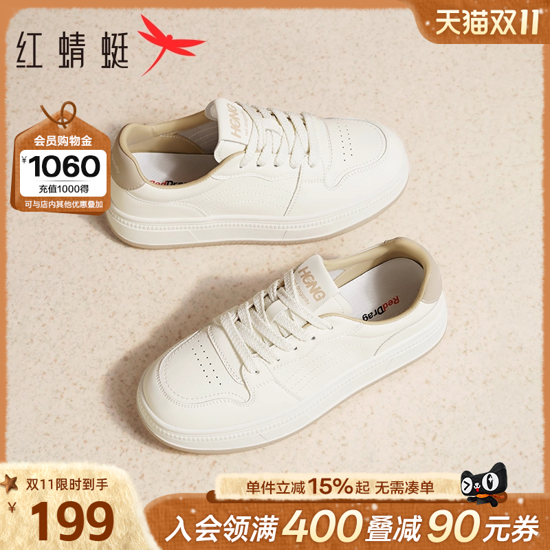 红蜻蜓休闲板鞋2025春秋新款女鞋厚底系带百搭小白鞋运动跑步鞋女