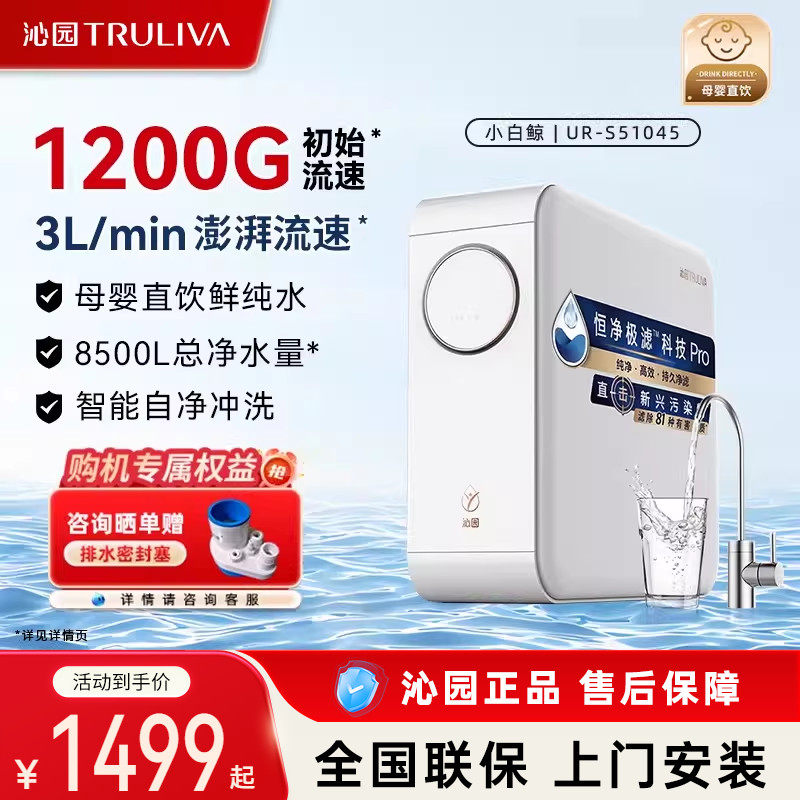 沁园净水器小白鲸家用自来水直饮机RO反渗透小水钻Pro官方旗舰店