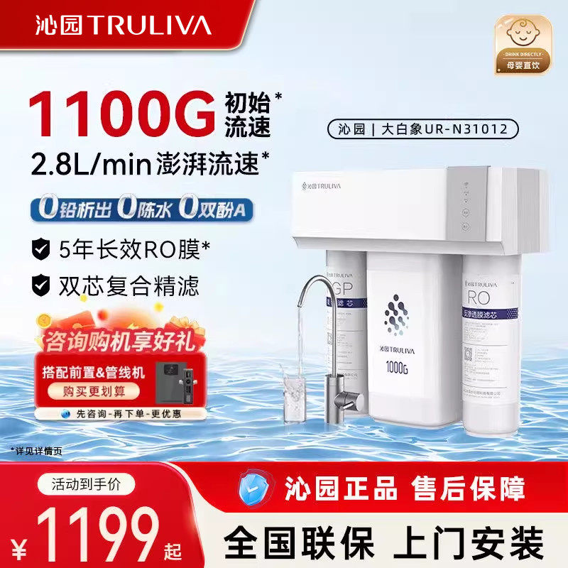 沁园官方家用净水器小水钻自来水反渗透厨下过滤直饮净水机1000G