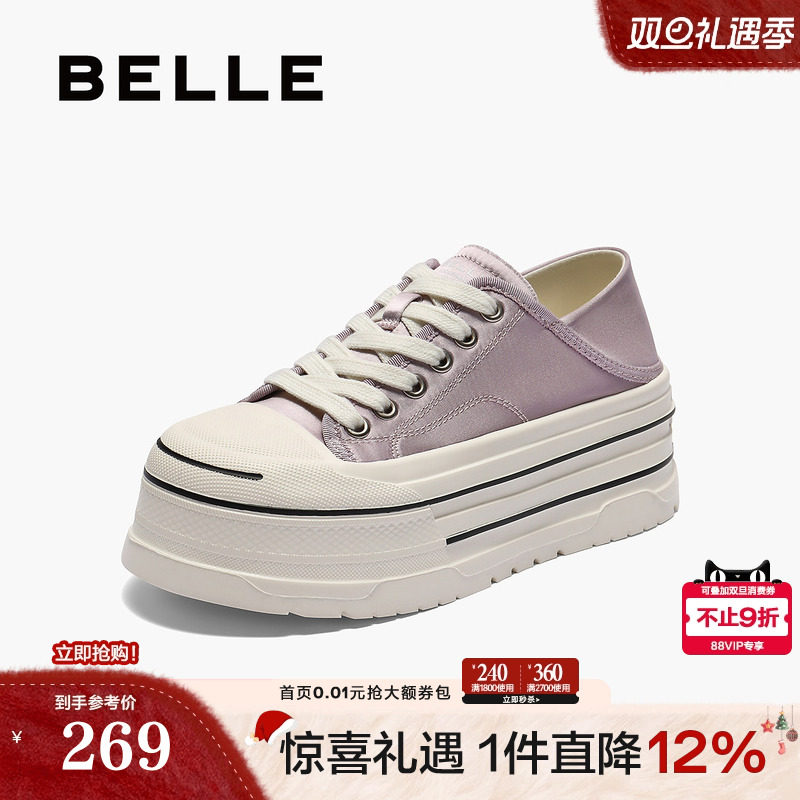 百丽厚底帆布鞋女2025秋新款一脚蹬休闲运动小白板鞋子B2673CM5