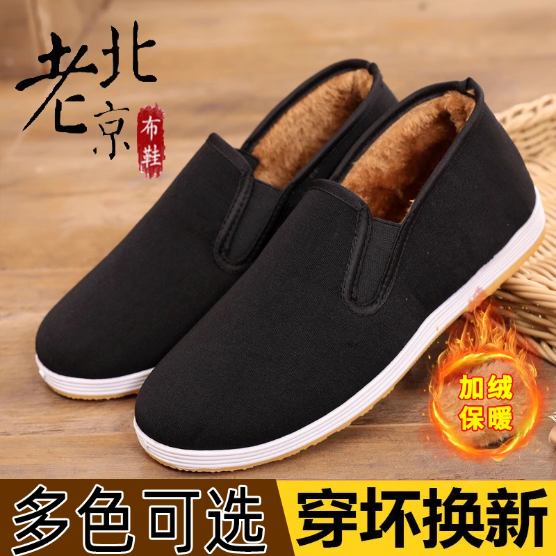 老北京布鞋男女冬季加绒加厚休闲帆布牛筋千层底一脚蹬工作棉鞋子