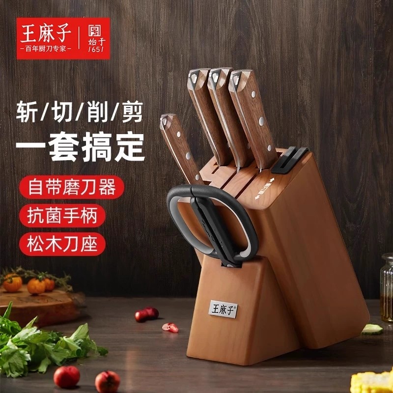 王麻子刀具套装菜刀菜板砧板二合一家用全套厨房厨具案板组合套刀