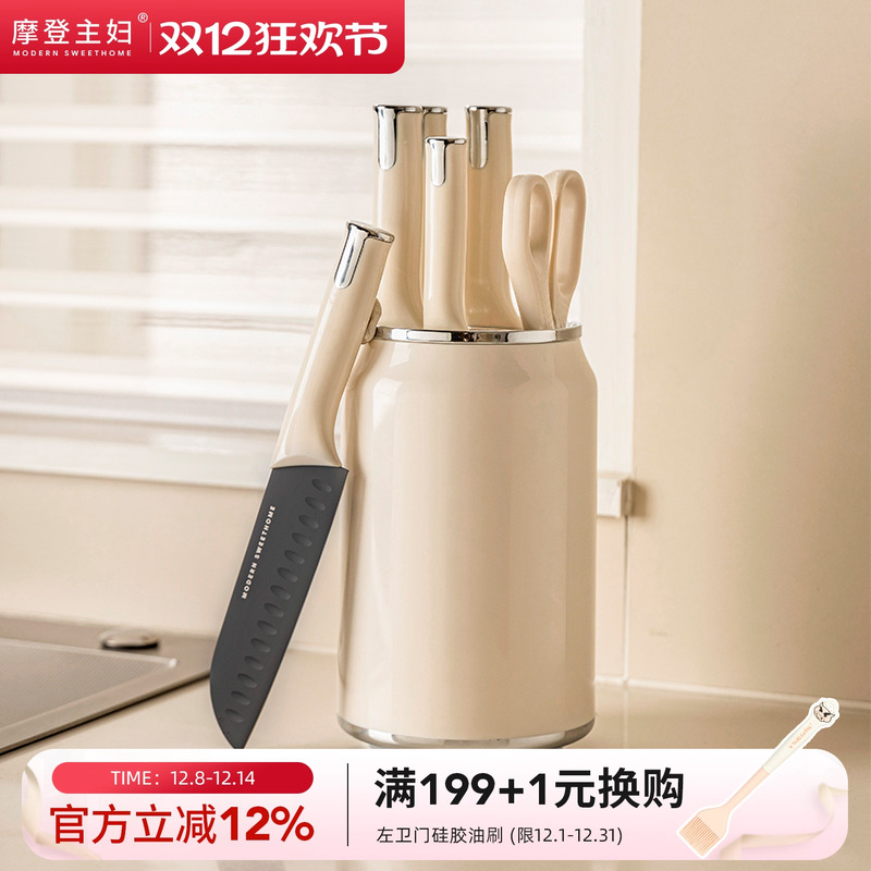 摩登主妇钛刀具厨房套装组合家用辅食厨具套刀全套菜刀菜板二合一