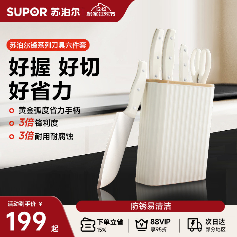 苏泊尔锋润套刀刀具套装抗菌家用全套厨房组合菜刀不锈钢宝宝辅食