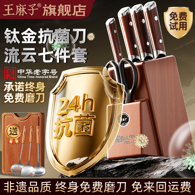 王麻子抗菌钛金刀具厨房套装组合家用菜刀厨刀全套厨具套刀七件套
