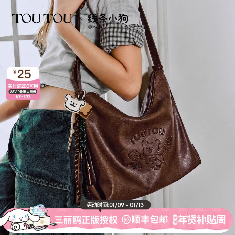 TOUTOU新款线条小狗大容量托特包慵懒风软皮单肩包通勤百搭斜挎包