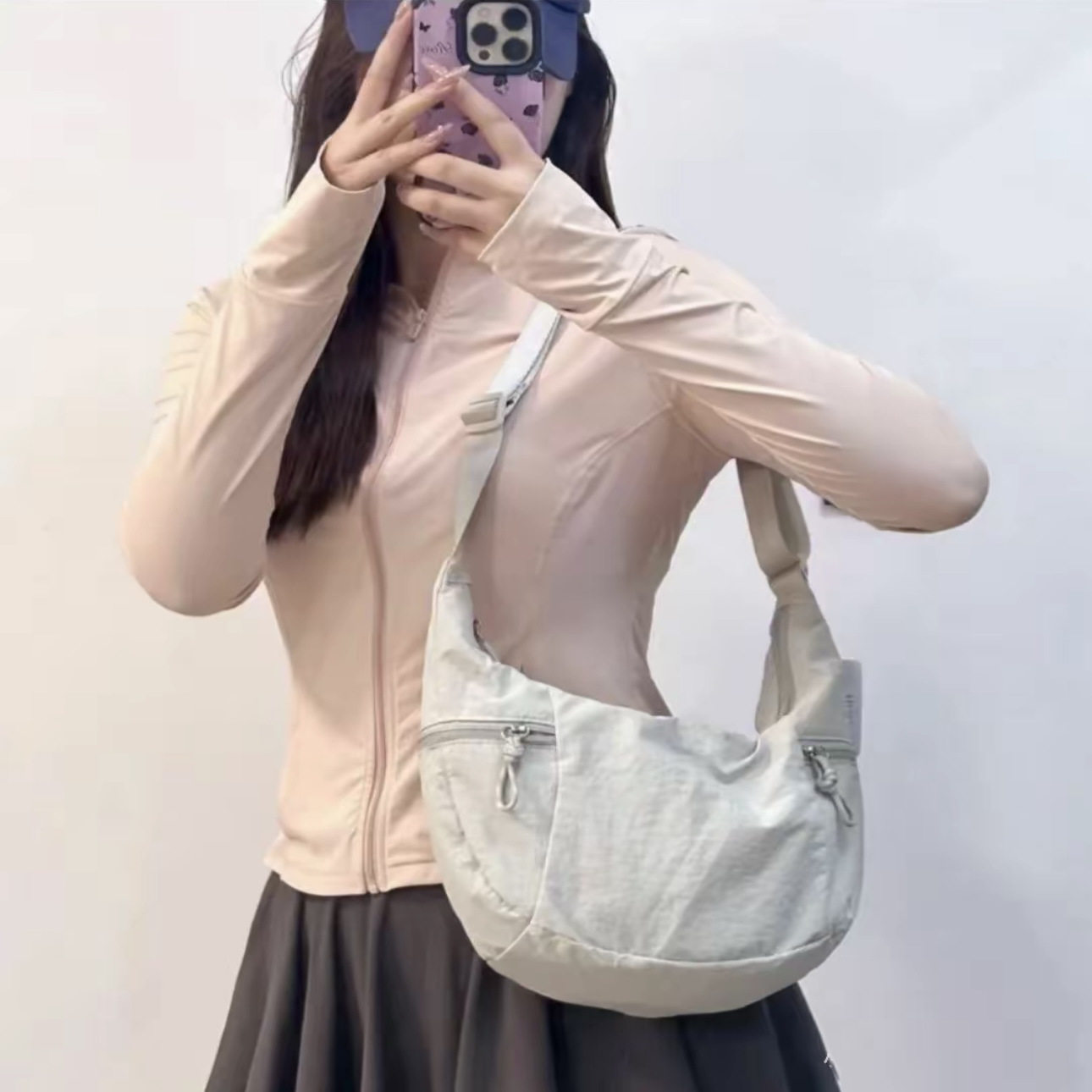 lu女士斜挎包饺子包牛角包骑行包大容量休闲运动百搭单肩包轻便