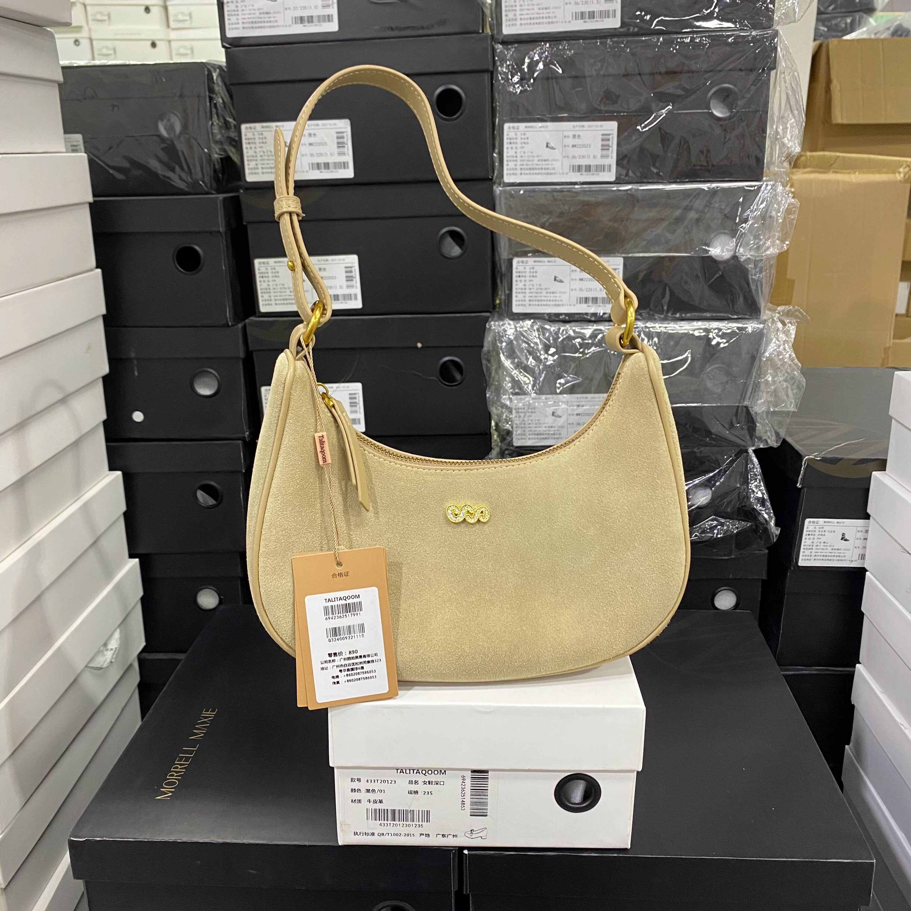 意大利轻奢专柜正品牛皮新款时尚翻绒皮单肩包斜跨包包0093杏色